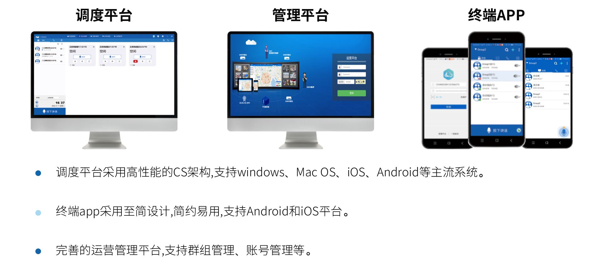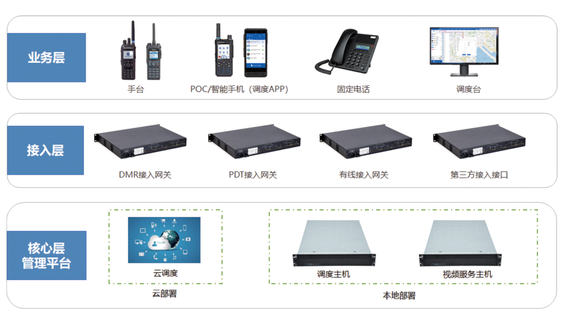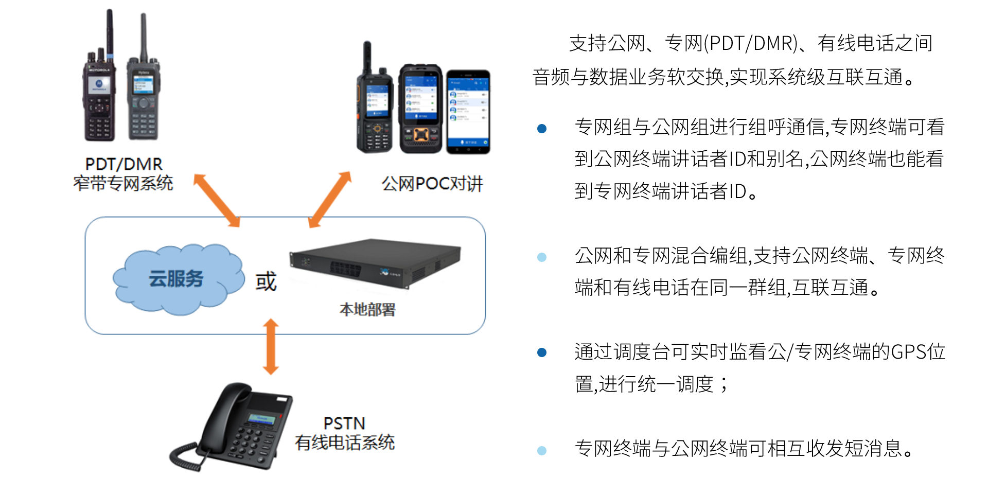 三吉讯集公专对讲系统 是以高效实时音视频通信为核心业务,以地图定位、多媒体消息、SOS紧急报警、巡更巡检等行业应用为延伸的一体化综合调度通信系统。 有效融合PDT、DMR、4G/5G、PSTN等不同通信网络制式,帮助行业用户在同一平台、多形态终端上实现语音对讲、数据传输、多样化智能应用,提升调度业务和工作协同效率。